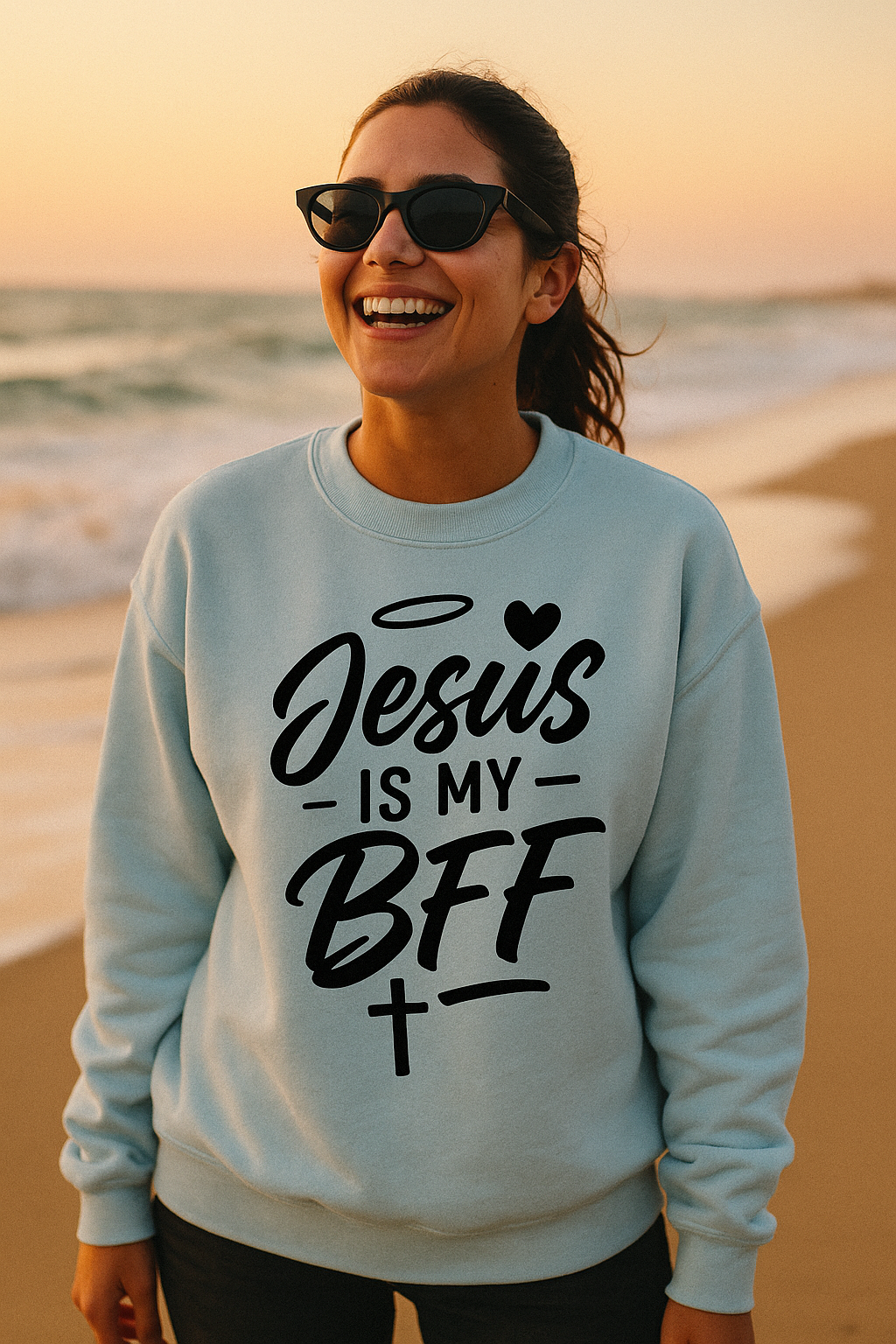 Whether you're heading to church, gathering with loved ones, or just enjoying a quiet moment at home, this sweatshirt offers both warmth and meaning. With a classic, relaxed fit and versatile style, it's a wardrobe essential for those who live their faith out loud. Ideal for gifting during Easter, birthdays, or simply because someone needs encouragement, this crewneck goes beyond fashion—it's a reminder of the greatest friendship of all.